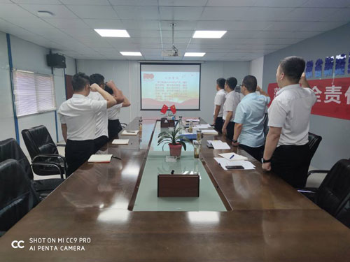 总支领导崔传志带领安鑫支部所有党员同志重温入党誓词。“我志愿加入中国共产党,拥护党的纲领,遵守党的章程,履行党员义务,执行党的决定......”铿锵有力的声音传达出了身为共产党员的自豪感和使命感。