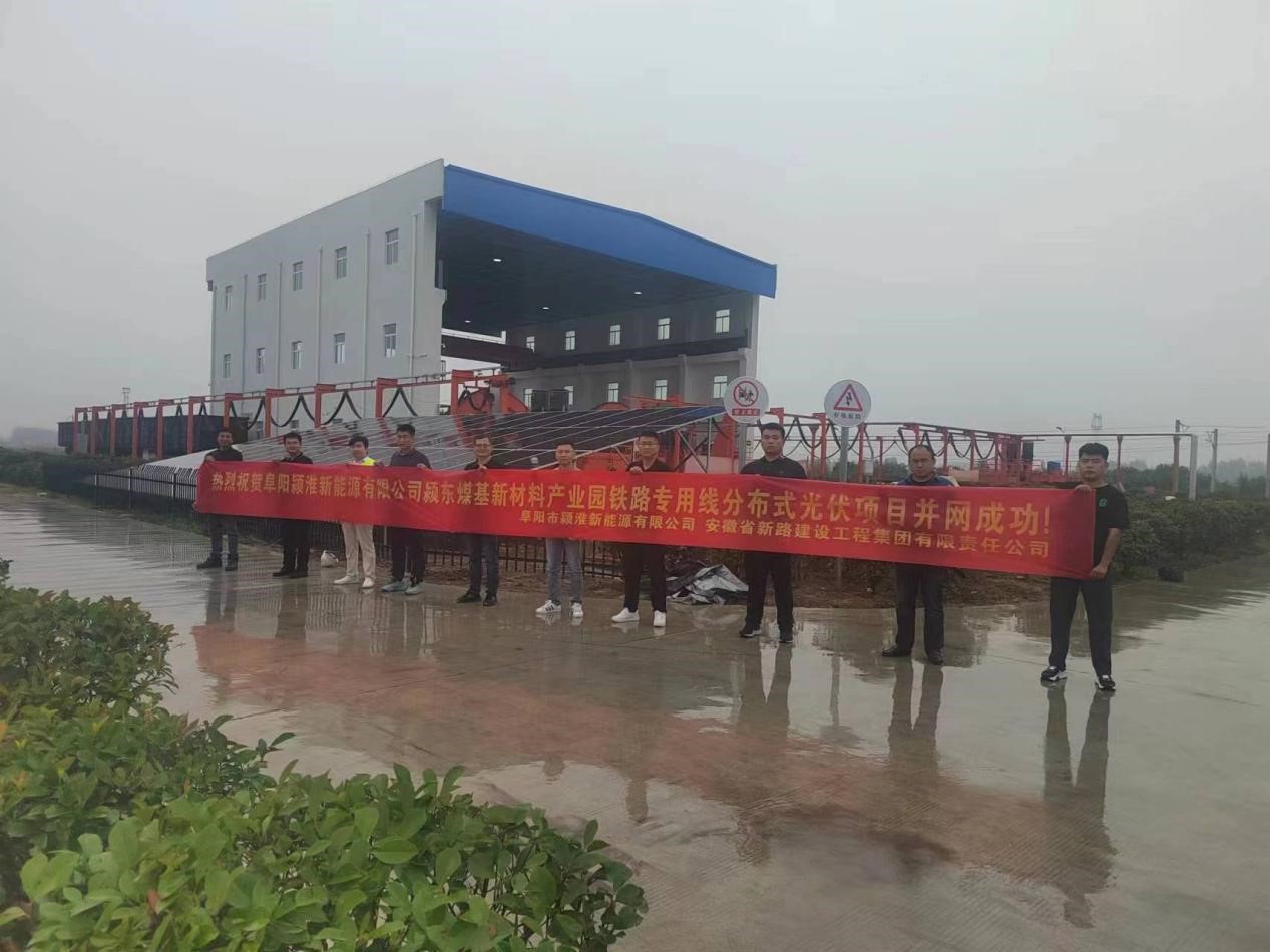 颍东煤基新材料产业园铁路专用线分布式光伏项目在阜阳市颍东区煤机产业园区举行项目竣工仪式,建设单位阜阳颍淮新能源有限公司、监理单位四川公众项目咨询管理有限公司、施工单位安徽省PA视讯建设公司集团有限公司、设计单位阜阳电力规划设计院有限公司等参建单位有关人员参加验收仪式。