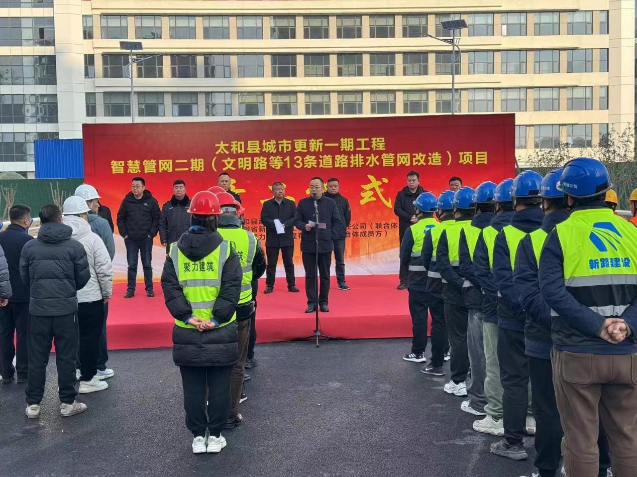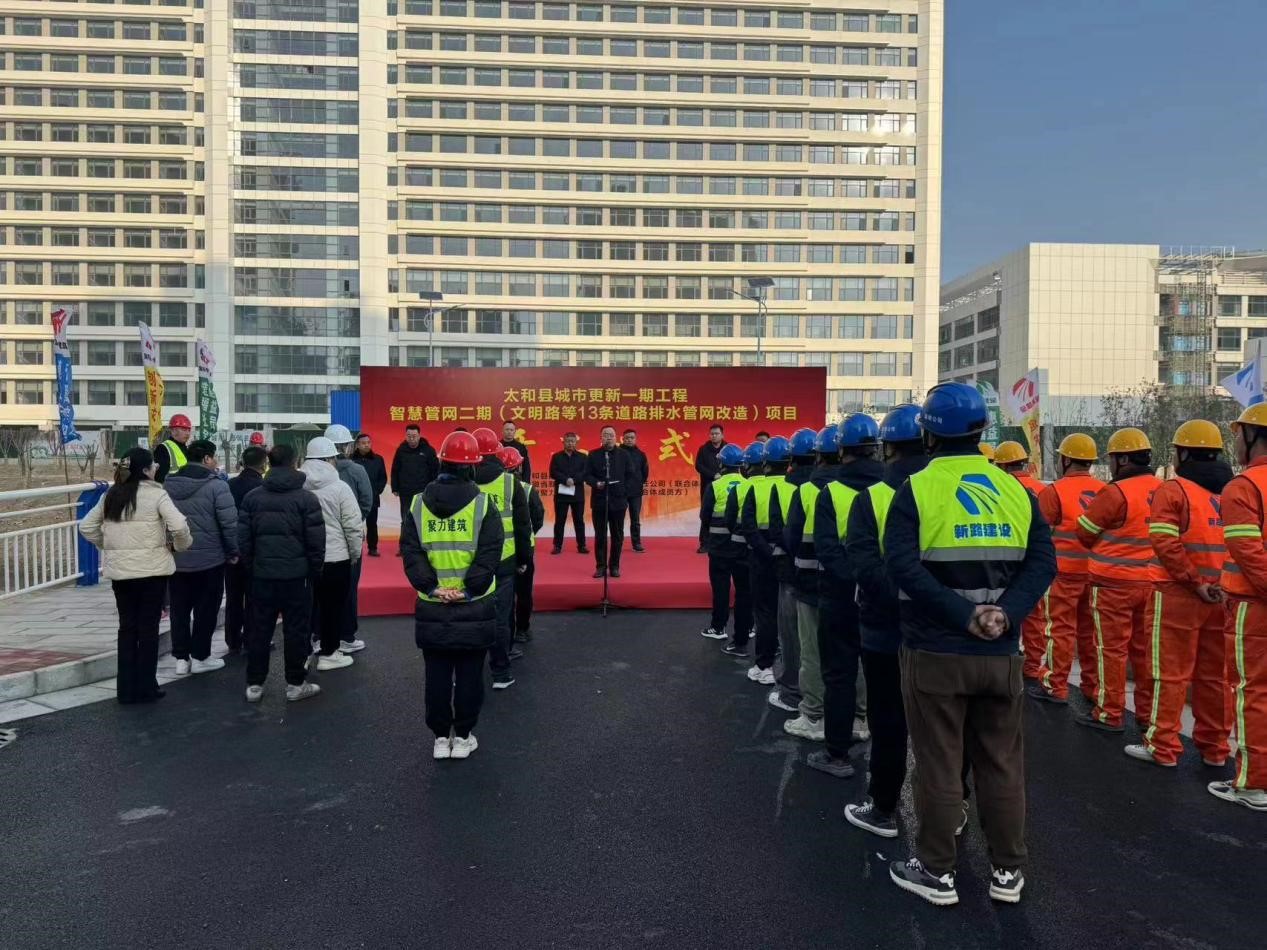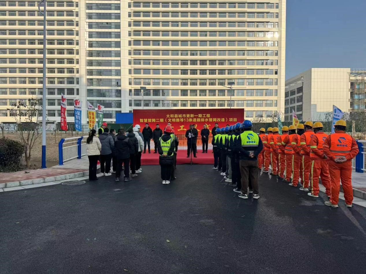 1月11日上午,太和县城市更新一期工程智慧管网二期(文明路等13条道路排水管网改造)项目开工仪式在太和县如期举行。参加仪式的有县住建局、环保局、城管局相关单位领导及国投集团公司总经理李晓明、西城公司总经理张华、PA视讯集团公司副总经理崔传志、运维分公司负责人李思杨、安徽聚力公司负责人车绍宇及项目部全体参建人员,仪式由国投集团公司总经理李晓明主持。
