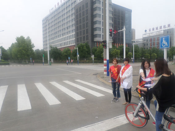 下午5时,正值交通繁忙的下班高峰时段,安鑫公司文明交通劝导队的志愿者们早早来到公司所在园区的十字路口,开展文明交通劝导活动。他们穿着整齐,披好“志愿者活动”绶带,手持“文明出行”宣传单,劝导纠正行人乱穿马路、闯红灯等不文明行为。活动过程中,志愿者们对每位过路的行人都会提供热情的帮助,为他们解忧排难。一句句“您好,我们是文明交通劝导员,请您自觉遵守交通法规,谢谢您的合作。”深深的刻在了每一位路人的心中。
