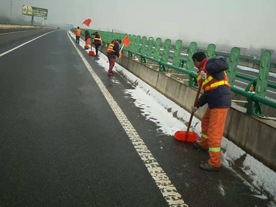 2018年12月10日16时,泗许高速公路亳州段遭遇短时强降雪,路面很快形成积雪极易结冰。为了确保公路安全畅通,减少事故发生,亳州北高速公路管理中心高度重视,第一时间启动雨雪冰冻天气应急预案和多方联动机制,高速交警大队迅速封闭收费入口并指挥途径车辆驶出高速,除雪铲冰工程车随后上路铲雪、撒布车对路段撒布融雪剂,我项目部积极响应管理中心的安排,组织大量人员上路进行人工除雪,及时对公路桥梁、弯道、陡坡等特殊路段撒盐除雪、清除路面积雪防止上冻,全力做好恶劣天气道路保通工作并及时消除安全隐患。