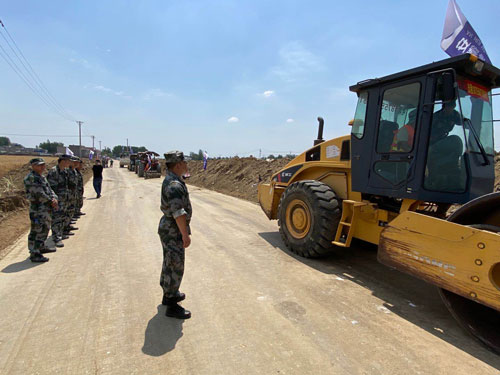 2020年5月26日,早上9点武装部吴部长和交管站张主任带队到阜阳市颍州区2020年农民公路养护01标施工现场进行道路应急抢险演练。本次学习任务主要分2个阶段,涉及道路修建工艺流程、道路机械实操项目的学习。