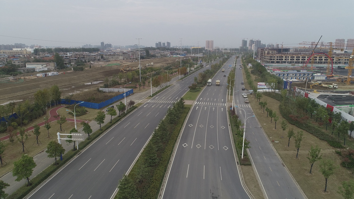阜阳市华桥东路道路及附属物工程,北从阜颍路以南(桩号K14+643),南至岳湖路以南(桩号K17+640),道路全长2997米。道路红线宽度70米,为四幅路断面形式,其中中央绿化分隔带8米,快车道16米×2(双向八车道),绿化分隔带3米×2,混合辅导7.5米×2,人行道4.5米×2(近期设置绿化带)。两侧辅道设置雨、污水管道,人行道设置给水、弱电等。合同总价为1.1亿元。
