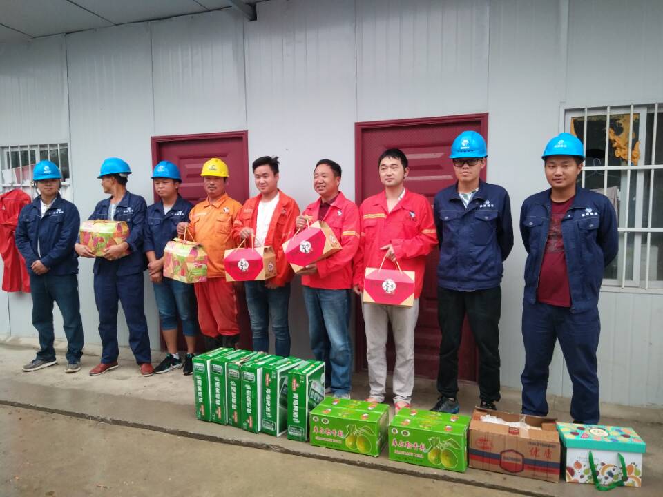 朝阳迎皓月,皓月伴中秋。佳节未到,但浓浓的节日氛围渐近,月饼香四溢,游子情更深。为向坚守在施工一线的建设者表达慰问和感谢,9月27日上午,安徽省PA视讯建设集团G220项目部为坚守在工作岗位的农民工兄弟送来了月饼、水果、啤酒等节日慰问品,将这份浓浓的深情传递到项目一线的每一位农民工兄弟手中,并向他们致以诚挚的节日祝福。