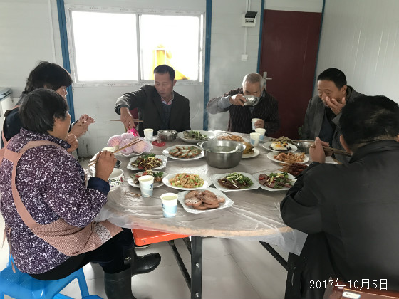 为了让大家感受团圆的真情,霞光大道项目部在中秋节的这天中午组织留守一线的职工们聚餐,饭桌上大家围坐在一起,一边品尝着大厨的菜肴,一边交流着生活、工作中的点滴趣事,欢声笑语、此起彼伏,场面分外热闹。在他们的言语中没有抱怨,没有疲倦,洋溢的只有兴奋和快乐和一种“忙碌并快乐着”的乐观心态。
