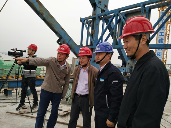 王局长、周局长在主桥施工现查看盖梁施工情况