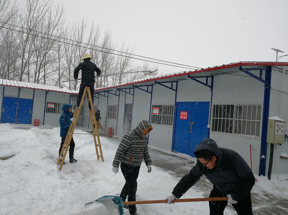 1月25日下午,伴随着凛冽大风和鹅毛大雪,为了项目部人员的安全,项目部员工主动扫雪,大家冒着大雪,不畏严寒,纷纷投入到除雪活动中,形成乍暖还寒季节里最美的景观!