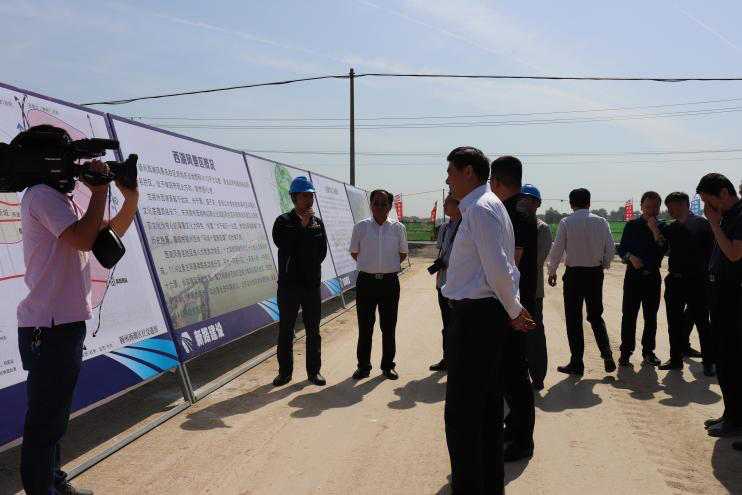 本次调研,先由城南新区管委会副主任刘亚辉对项目建设的意义及基本情况进行了简要汇报,随后,项目负责人向调研团作出详细汇报,他指出,在各级领导和集团公司的大力支持下,该项目进展迅速,目前已完成近1亿的产值。为实现11月底完成快车道主体通车目标,项目部制定了“撸起袖子加油干,大干百天争先锋”的计划,确保在7月底完成土石方工程,为下步路面工程施工打下坚实基础。