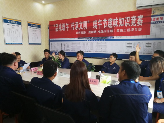 6月18日,为庆祝中国的四大节日之一的“端午节”,弘扬中华民族民俗文化,传承中华民族传统文化,强化员工民俗文化意识,颍河西路(航颖路-七渔河东路)项目部举办以“品味端午 传承文明”为主题的端午节趣味知识竞赛活动。