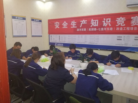为深入开展第十七个“安全生产月”活动,进一步加强安全生产宣传教育,提高全体人员安全素质,阜阳市颍河西路(航颍路-七渔河东路)改造工程项目部于2018年6月23日开展安全月知识竞赛。