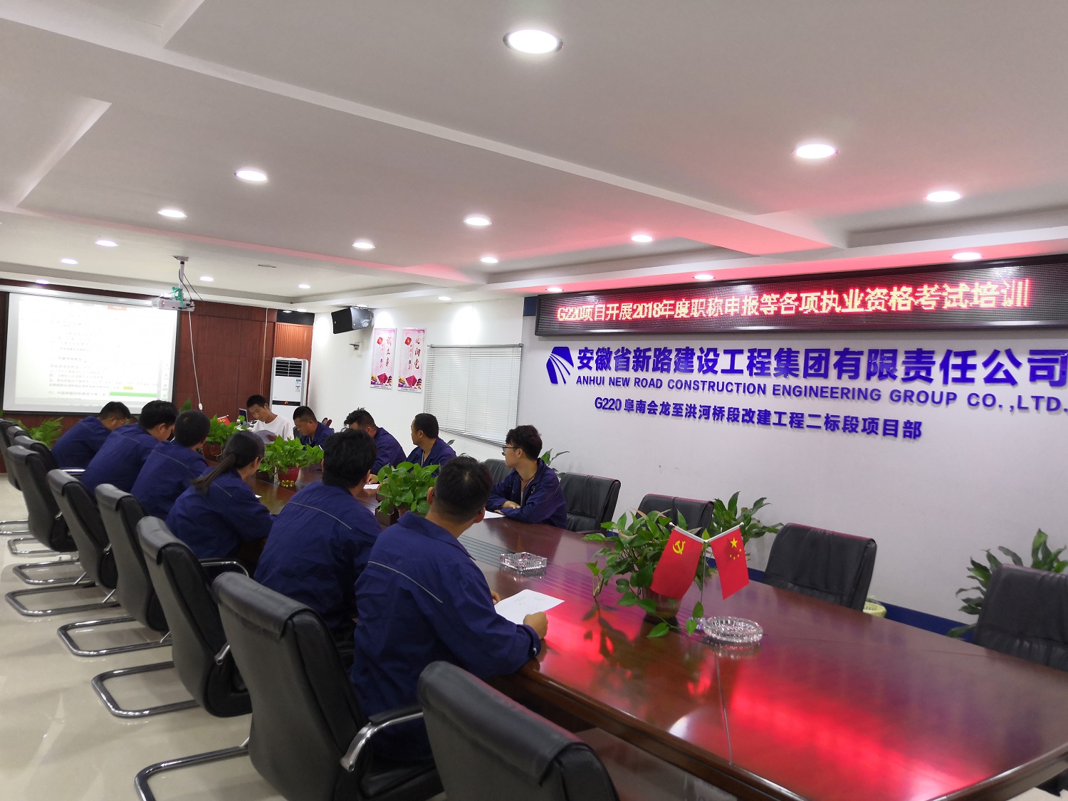 为帮助项目部同事们更深入的了解职称政策,掌握职称申报及试验检测执业资格、注册安全工程师执业资格师、一级、二级建造师执业资格、造价工程师执业资格等业务流程及申报材料准备的注意事项,G220项目综合办于8月30日晚在项目部会议室开展2018年度职称申报及各项相关执业资格申报培训会。