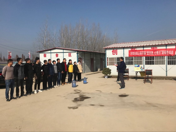 为了提高项目部全体人员的综合素质,鼓励员工之间互相支援、互相扶持,形成团队凝聚力,发扬团队协作互帮互助的精神。2018年12月18日中午,我部利用午饭后时间,举行《爱奔跑,心接力》趣味性活动。