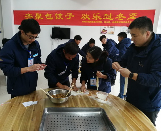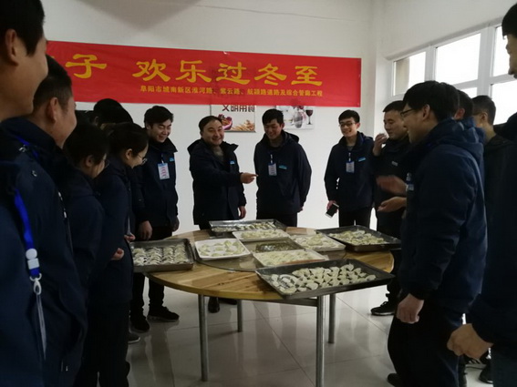2018年12月22日是中国传统节日——冬至。冬至,在我国是一个非常重要的节气,也是一个传统节日。为进一步弘扬民俗文化,继承传统习俗,同时也为了体现项目部的人文关怀,让职工感受家的温暖,12月22日下午,阜阳市城南新区淮河路、紫云路、航颍路道路及综合管廊工程项目部在食堂组织了一场温馨的“齐聚包饺子 欢乐过冬至”的包饺子比赛活动。