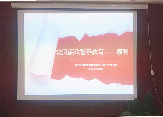 为进一步推进党风廉政建设工作,筑牢安全防线,颍州经济开发区路网建设工程PPP项目项目部于2018年12月24日对项目部员工进行廉政警示教育学习,本次教育活动主题为《无惧权势,坚守原则》。