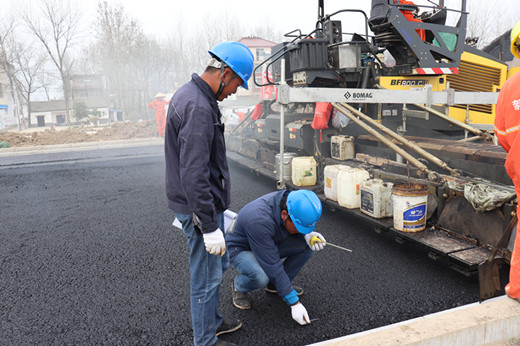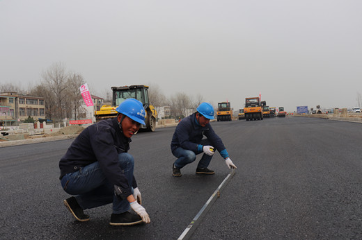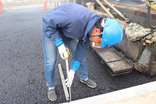 一道河路西延建设工程的路面施工工作开展以来。且不谈我们的现场管理人员做出了多少贡献,只他们身上的形象变化足以彰显吃苦耐劳和无私奉献的精神。自路面施工开始,吴迪、闫雪松等员工始终坚守在施工第一线。他们一直在重复着这样的生活,早上5:00起床开始进行路面清扫、油层铺洒、检查机械、预热熨平板等各种施工前的准备工作。摊铺开始后,他们也要持续的关注摊铺机的速度、混合料的均匀程度、是否有离析,以保证沥青层的厚度和平整度。同时也要不断测量碾压温度和接缝找平,保障沥青施工的安全和质量,一天下来每个人的运动步数都能到达20000步甚至更多。每天吃饭也无法离开现场,只能就着汗水、泥土和沥青味解决。晚上到八九点现场工作结束,吴迪等人还要进行第二天工作断面安排、摊铺计划制定等工作,回到宿舍,基本上都是倒头就睡。