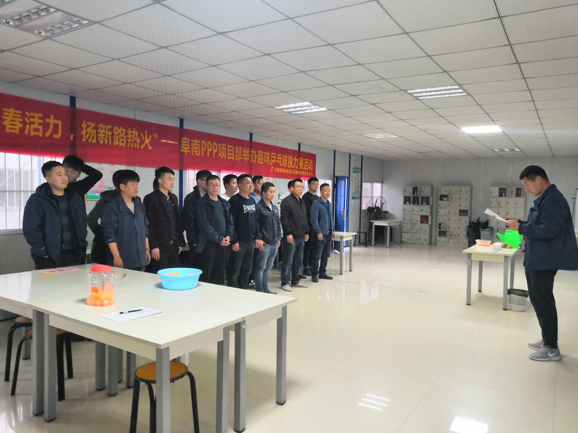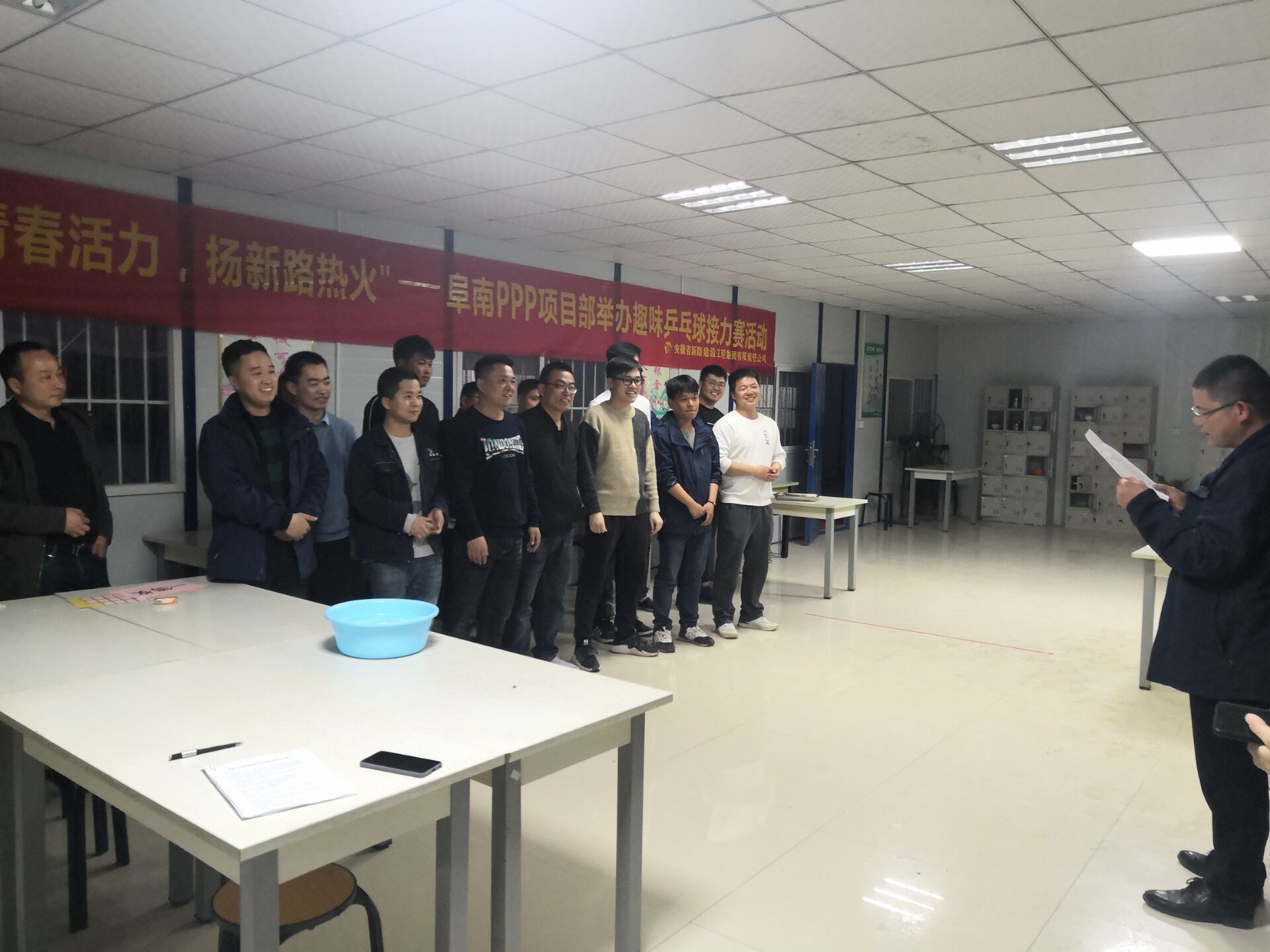 为活跃集体气氛增加凝聚力,展示职工风采,营造积极向上的企业生活文化,3月19日阜南PPP项目利用晚饭前空闲时间,开展了一场别开生面的趣味乒乓球接力赛。