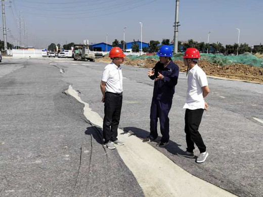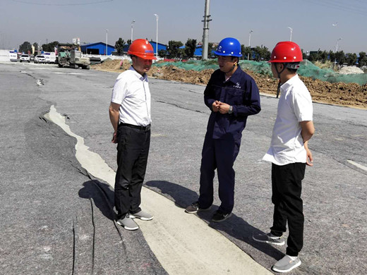谢局长一行人到达人民路后,对现场的水稳层进行了实地查看,并询问施工过程中的相关情况,详细了解人民路的施工和进度状况。在听取了项目负责人关于施工安排的汇报之后,提出了相关建议,指示一定要做好汛期前的各项准备工作,以确保工程质量和施工安全。