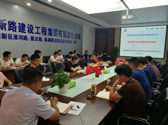 2019年6月21日,PA视讯建设集团在阜阳市城南新区淮河路、紫云路、航颍路道路及综合管廊工程项目部召开管廊施工技术专题交流会。集团副总经理李超出席并主持会议。集团公司总工办、工程部、成本合同部、人力资源部及在建项目的主要负责人共40余人参会。