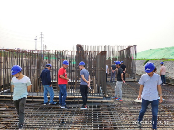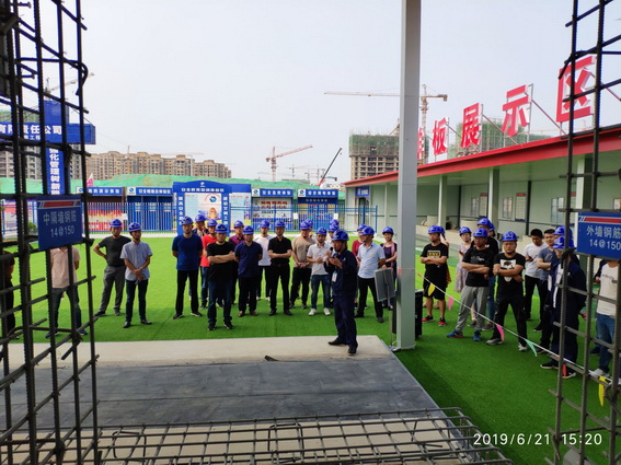 随后参会人员前往样板展示区对管廊样板进行参观。季晓俊对照样板再次为大家详细讲解了管廊施工的工序工艺和施工要点。之后参会人员前往工程现场对管廊实体工程进行了参观交流。