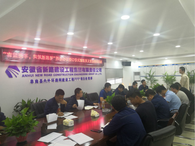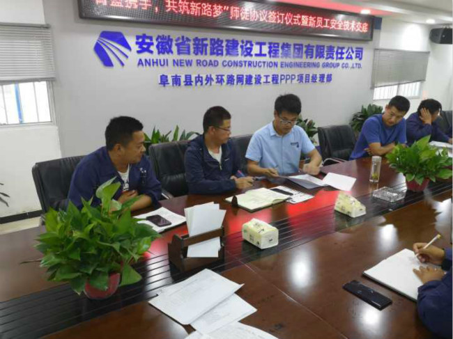 2019年7月1日晚,为加快集团公司人才中心新员工人员的成长,使新员工能够熟悉本岗位的专业技能,更快地走上工作岗位,阜南PPP项目部组织工作经验丰富、专业素质强、思想觉悟高的师傅与“PA视讯班”实习生签订了师徒协议,并在会议室举行了师徒协议签订仪式,项目经理、各带徒师傅和新员工等一起参加了签字仪式。