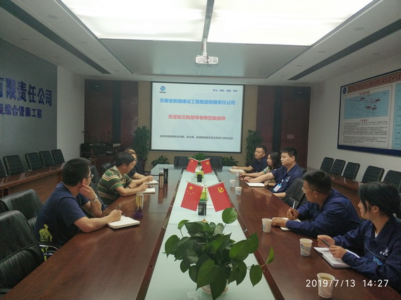2019年7月13日下午,安徽交通职业技术学院土木工程系主任王守胜、17级PA视讯班班主任王佳宾一行在集团公司人力资源部部长魏静的陪同下,莅临阜阳市城南新区淮河路、紫云路、航颍路道路及综合管廊工程项目看望在岗实习的学生。