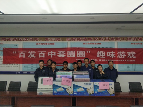 为丰富职工业余生活,增进职工之间交流沟通,近日,阜阳市城南新区淮河路、紫云路、航 颍路道路及综合管廊工程项目部成功开展“百发百中套圈圈”趣味游戏。