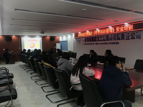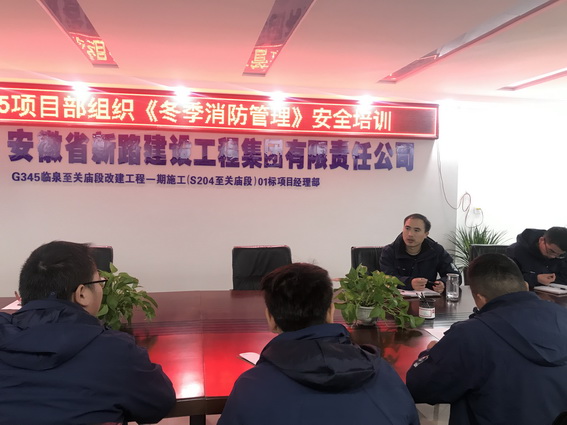 2019年12月4日晚,临泉G345项目部组织全体员工利用晚饭后时间在项目部会议室开展《冬季消防管理》安全培训。