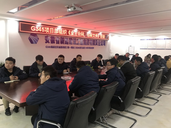 12月4日晚,G345项目部全体员工在会议室开展《业主合同、招标文件》培训。