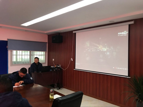 全体员工在认真观看红色通缉中