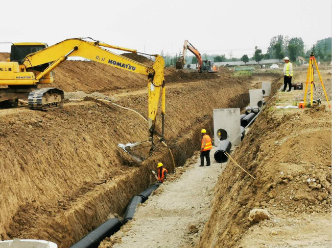 项目部为确保2020年度各项施工任务按期完工,项目部在“以安全保质量,以质量促进度,向进度要效益”的施工理念引领下,由项目负责人薛鸿儒每周主持召开项目进度推进会。会上,签订周节点工期完。成立考核小组,针对考核细则落实将奖罚制度。项目派专人到现场蹲点协助指导队伍工作,并根据现场需求及时调整增加劳务队员及机械设备等生产要素的投入,积极为加快施工进度提供人力、物力和技术等方面的支持,目前,多个作业面同时供9个道排班组,1个桥梁班组,1个水稳班组采取“5+2”、“白加黑”24小时倒班作业的抢工,有力确保不间断作业。