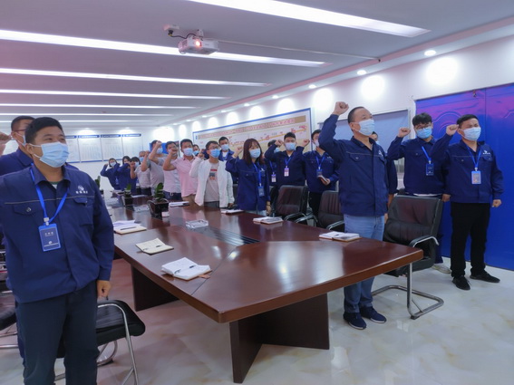 项目全体成员在会议室举行“安全生产月”活动仪式