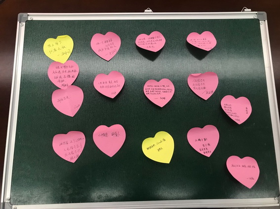 在“道德讲堂”活动中,开展了观看《道德讲堂·诚实守信》短片,播放公益广告《好人就在身边》,听听模范人物的故事,谈谈自己观看后的感悟及对身边好人好事进行点评,在便签上写下自己的心得体会,贴在小黑板上和大家共享等环节。