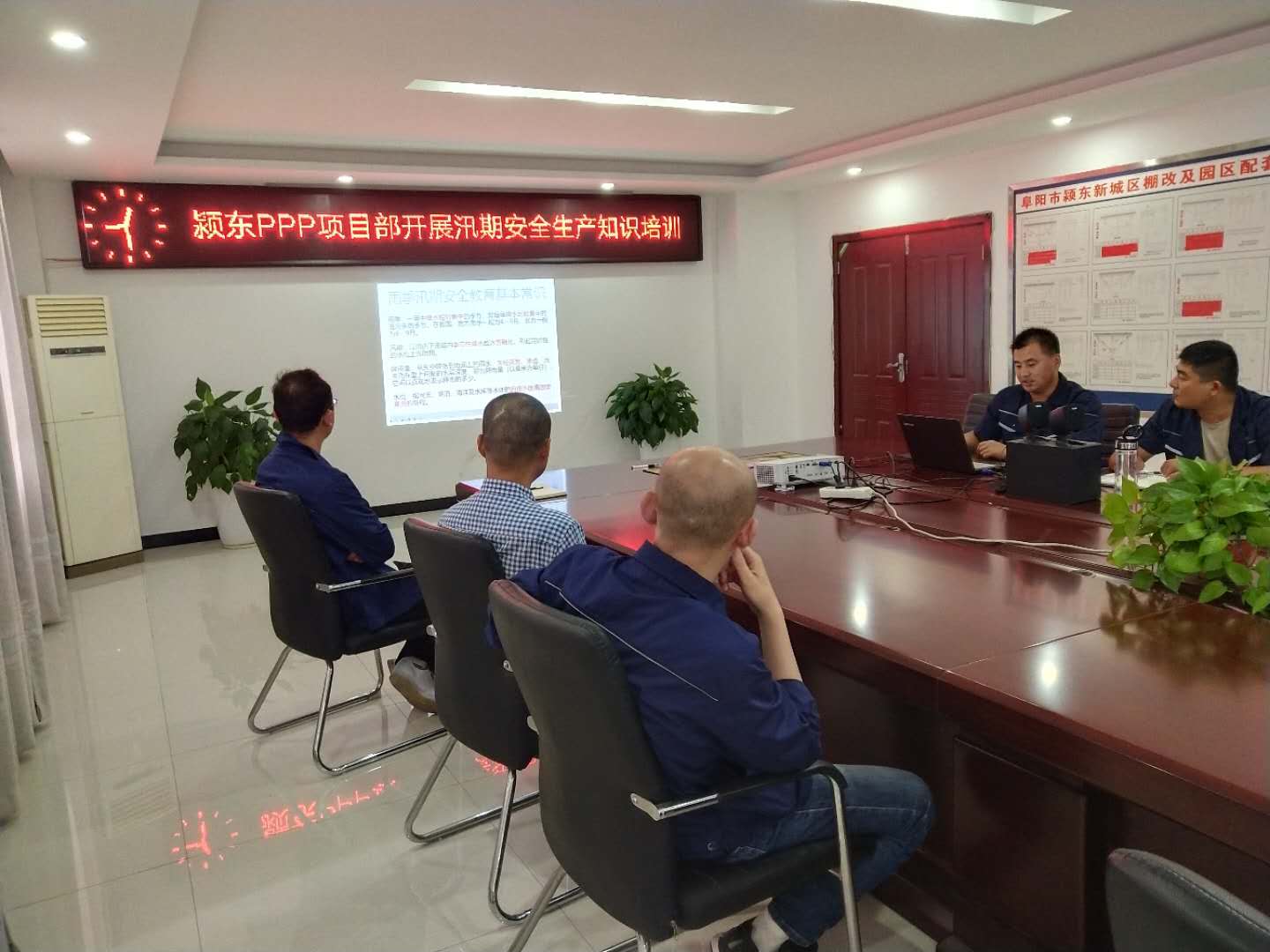 员工认真听取汛期易发自然灾害的预防、自救及处理措施