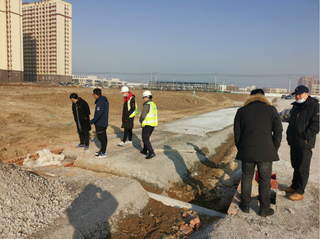 2020年12月22日上午,阜南县经济开发区管委会副局长丁玲在EPC项目监理办总工程师崔宁的陪同下,莅临阜南经济开发区市政道路及配套设施项目和平路、颍河路施工现场考察调研项目施工情况及沥青施工计划。