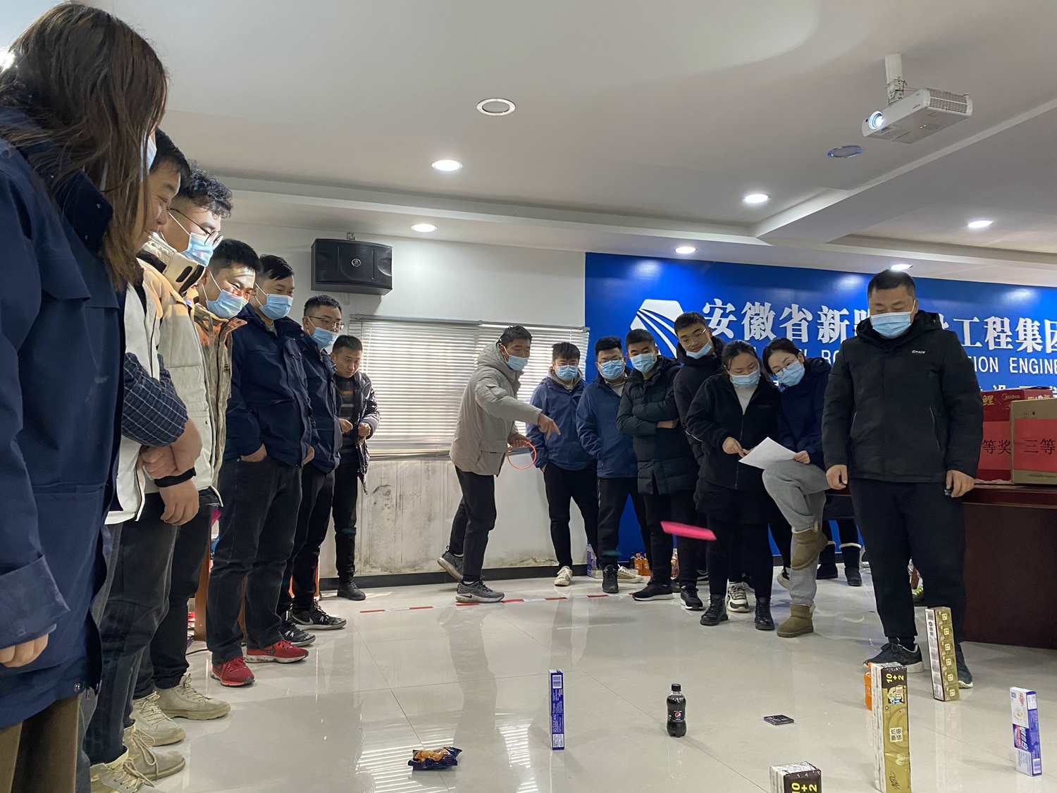 为了展现职工良好的精神风貌,丰富员工文化生活,增强集体凝聚力,项目部于2020年12月30日在会议室举行了一场别开生面的趣味套圈活动。