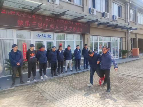 为丰富职工的业余文化生活,增强员工的凝聚力,加深同事间的交流与团结,培养员工的团队协作能力,发扬公司的企业文化精神,阜阳市西湖产学研创智区基础设施工程路网建设工程项目部于3月31日举办“快乐三足行”两人三足趣味文体活动。