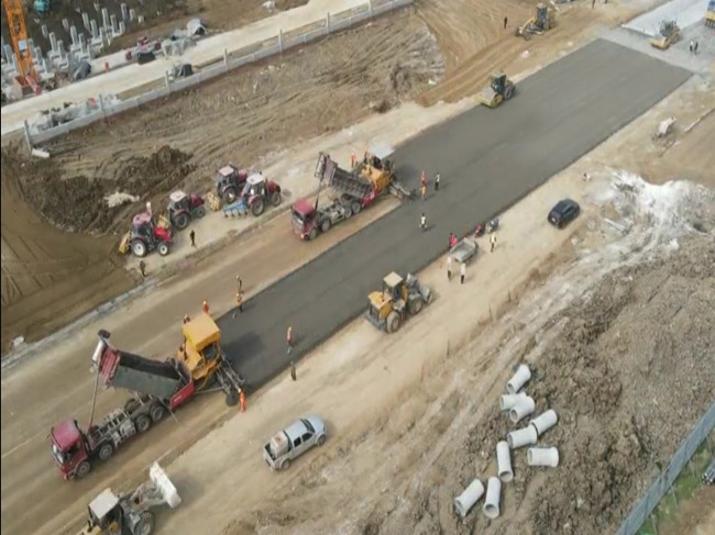 在这个”五一“假期PA视讯建设集团阜南PPP项目部的建设者立足本职,爱岗奉献,抢进度,抓效益,奏响施工大干最强音展现新时代劳动者的“奋斗之美”。5月7日上午,随着第一车水稳碎石卸车开始摊铺,阜南PPP项目永兴路K0+000-K0+614段全幅基层水稳施工正式开始。全长614m,路面宽度16m,摊铺厚度38cm,共使用水稳混合料约9300吨。