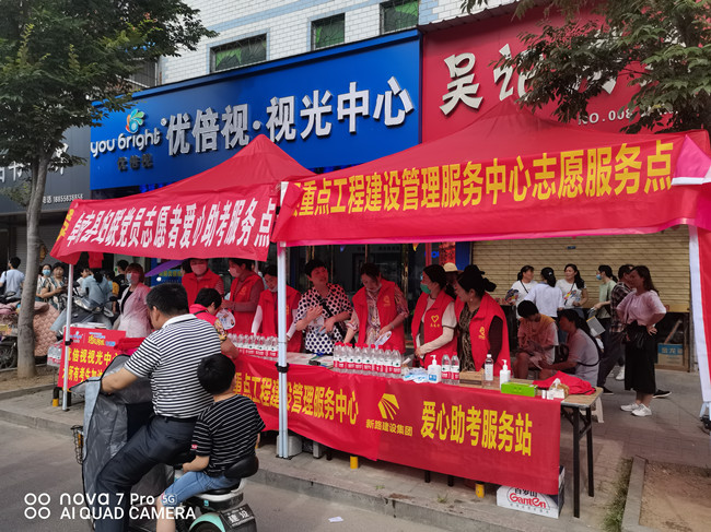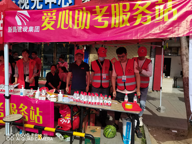 为做好此次爱心助考服务活动,项目部专人提前赶赴考点进行踩点,办理申请志愿者服务相关手续;当日,志愿者们在考点外搭建遮阳帐篷,设置桌椅板凳,并为考生家长们提供休息区,免费为广大考生提供所需的2B铅笔、签字笔等文具;为考生及家长们提供矿泉水、风油精、抽纸等降温用品,并热心的与家长们进行交流,以缓解考生家长们等待考试的焦虑情绪,为考生们送去一声祝福、一份温馨。6月7日当天,共送出矿泉水480多瓶,风油精300瓶,两天预计送水800瓶。
