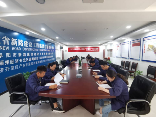 项目部全体人员在会议室参加2021年“安康杯”知识竞赛活动