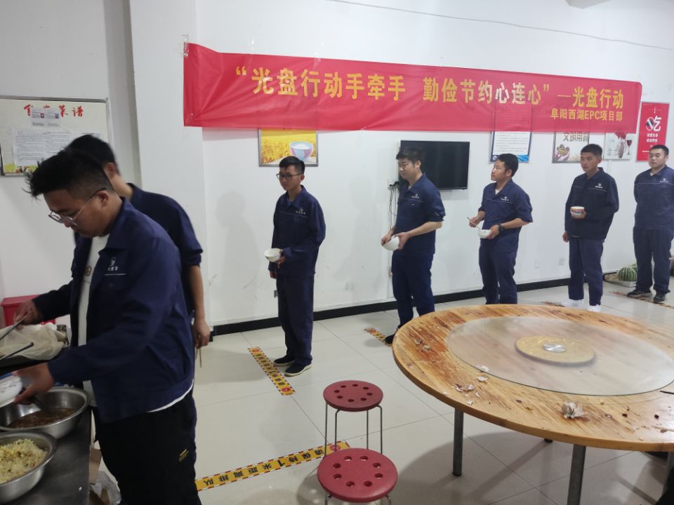 为响应集团公司文明节俭的号召,更好的贯彻学习《反食品浪费法》文件精神,阜阳西湖EPC项目部于7月19号晚举办了“勤俭节约、反对食品浪费、光盘行动”。在员工中倡导节俭用餐,形成文明用餐、节俭惜福的良好风气。