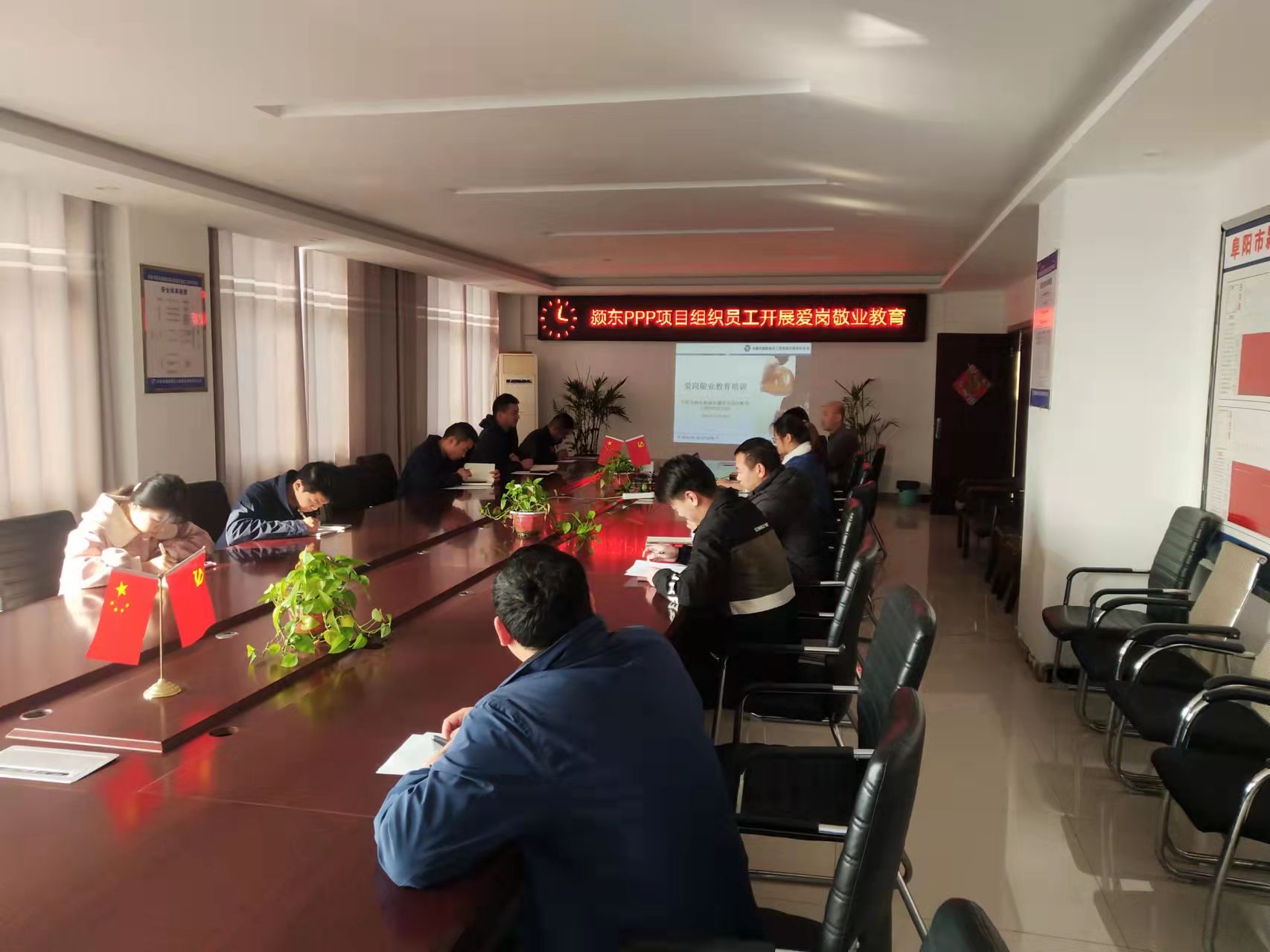 11月18日下午,颍东PPP项目组织员工开展爱岗敬业教育,用模范事迹和身边故事,引导全体干部职工爱岗敬业,争先创优,弘扬社会主义核心价值观,传递正能量。