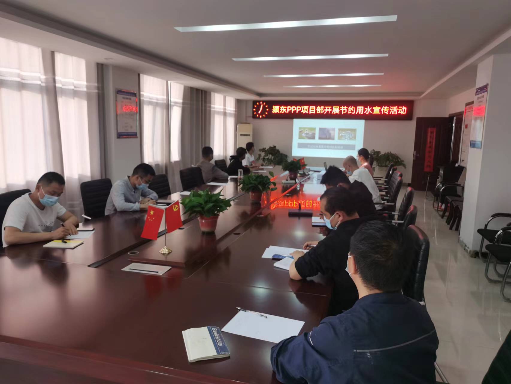 综合科宣传人员在项目部范围内粘贴节约用水宣传标语、微信平台发布节约用水宣传资料,组织学习勤俭节约·节约用水宣传教育PPT等途径,倡导广大职工养成节约用水的良好习惯。