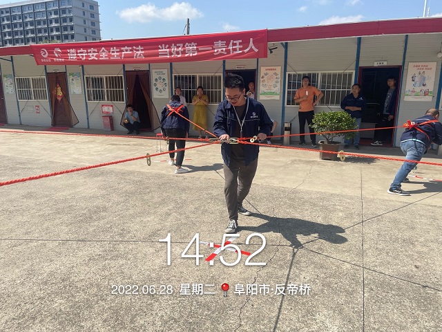 为了丰富职工业余文化生活,活跃项目部气氛,增强员工的凝聚力和向心力,激发员工拼搏进取的企业精神,2022年6月28日下午颍州EPC项目和诚创公司组织开展“不忘初心聚合力,牢记使命争排头”为主题的多向拔河比赛。比赛场面热闹非凡,笑声不断。呐喊声、加油声、助威声,此起彼伏。