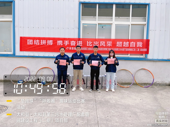 为了“迎接中秋”的到来,增强我部的凝聚力,加强各科室的沟通与交流,促进友谊,展示我部人文风采。9月8日上午在太和污水管网项目部院内举办了“用激情挑战工作,以健康武装青春”为主题的“呼啦圈”、“垫排球”趣味运动比赛活动。
