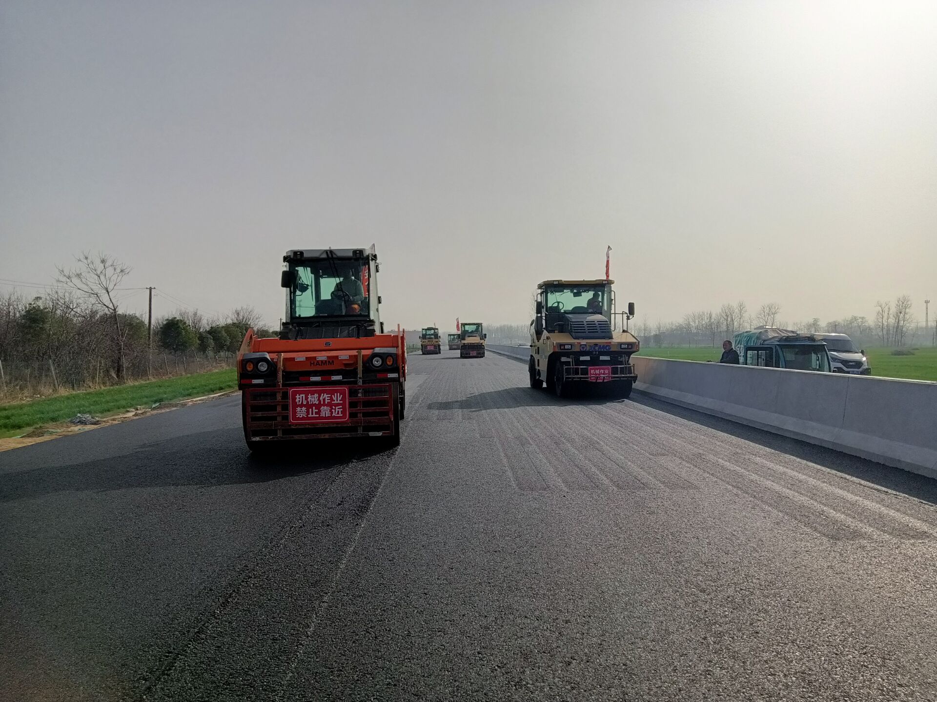 现场沥青中面层摊铺