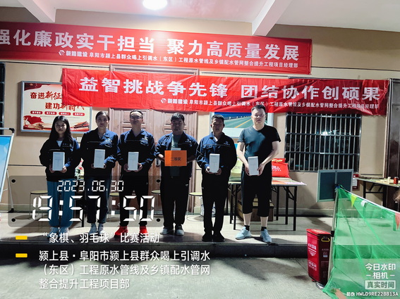 本场比赛为团体赛,活动开始宣布活动方案并介绍活动规则及流程,根据现场人数自由组队,共分为4组,每组6名选手,每组根据选手自身特长奋勇积极报名,首先,第一、二组互相对决,第三、四组互相对决,胜利的两方再争夺第一名。比赛过程中,参与第一项双打羽毛球的人员斗志昂扬,热情高涨,团队以互相配合的方式打败对方,第二项中国象棋比赛的选手们个个沉稳、认真冷静,对战的双方在战赛中严谨思考拿下对方棋子。其他同组的选手在一旁加油打气、掌声不断,现场阵阵的喝彩和欢笑声让这个夏天的温度更加凉爽起来。整个比赛场面欢快激烈,紧张有序,给颍上管网东区项目带来浓浓的暖意,比赛经过激烈的比拼,每项比赛都评选出第一、二、三名,本次活动采用积分制的方式最终从高到低排名,最终角逐综合评出第三组一等奖、第一组二等奖、第三组三等奖。