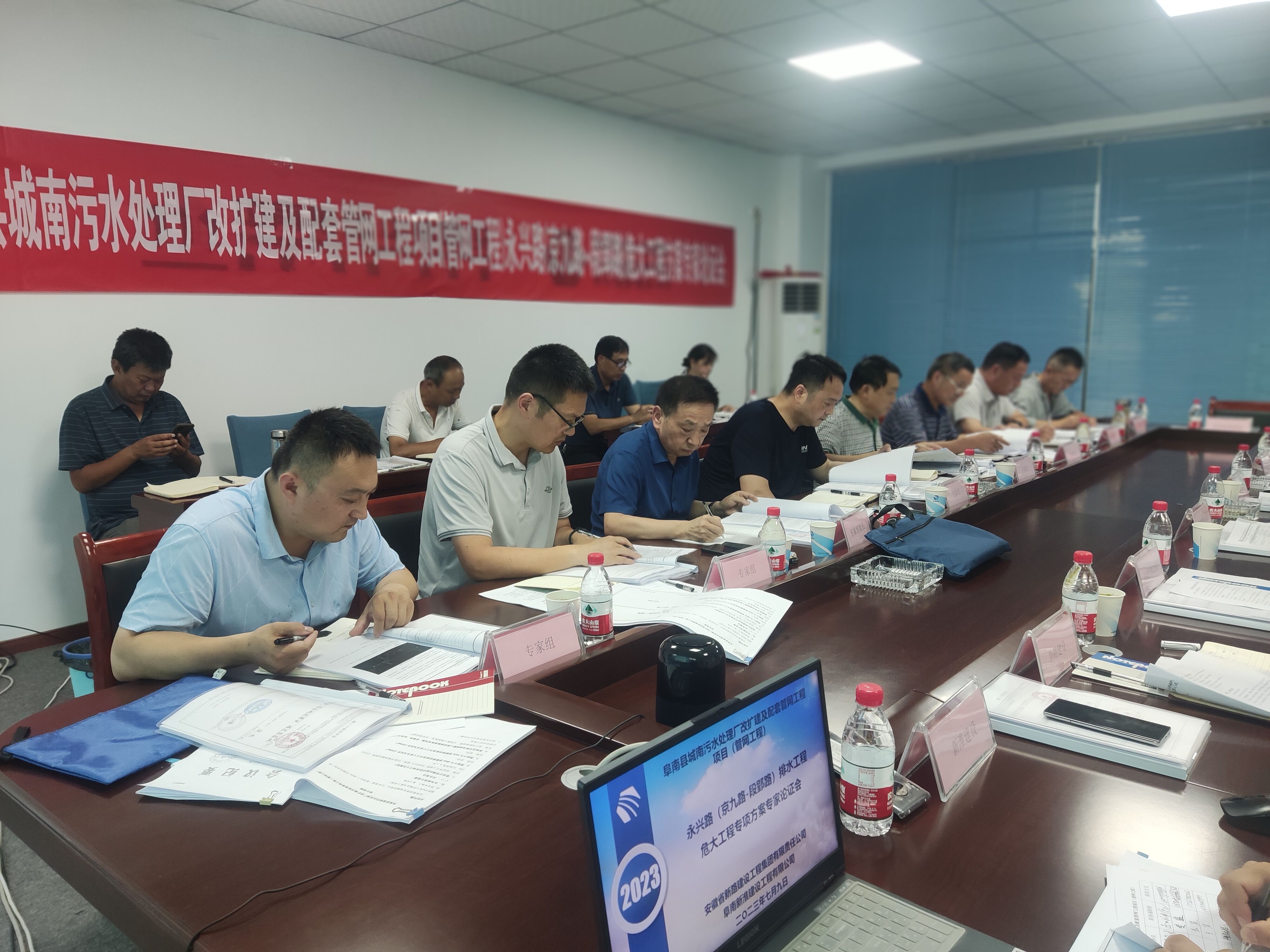 2023年7月9日下午,安徽省PA视讯建设工程集团有限责任公司与阜南新淮建筑工程有限公司联合体组织召开阜南县城南污水处理厂改扩建及配套管网提升改造项目永兴路(京九路~段郢路)沉井、顶管暨雨污水管网深基槽专项方案评审会议,阜南县城市管理行政执法局、受邀专家评审组、参建各方派员参会。