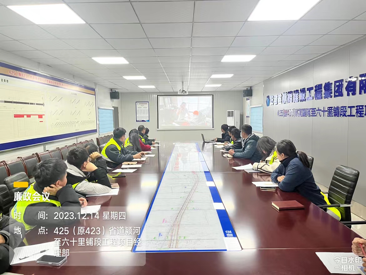 为进一步加强项目部党风廉政建设,筑牢廉政防线,2023年12月14日下午,425(原423)省道颍河至六十里铺段工程项目部召开党风廉政建设专题会议,会议由项目经理王震主持。