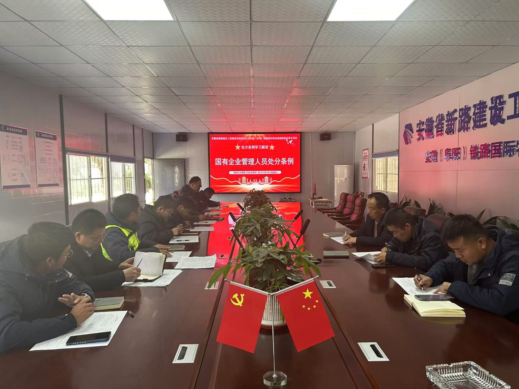 项目部组织学习《国有企业管理人员处分条例》、《中国共产党纪律处分条例》进行职工廉政教育,组织观看(《永远吹冲锋号》 第2集政治监督),举行廉政法规应知应会内容测试,围绕作风和纪律建设深入开展自查自纠和自我剖析,并制定整改措施。