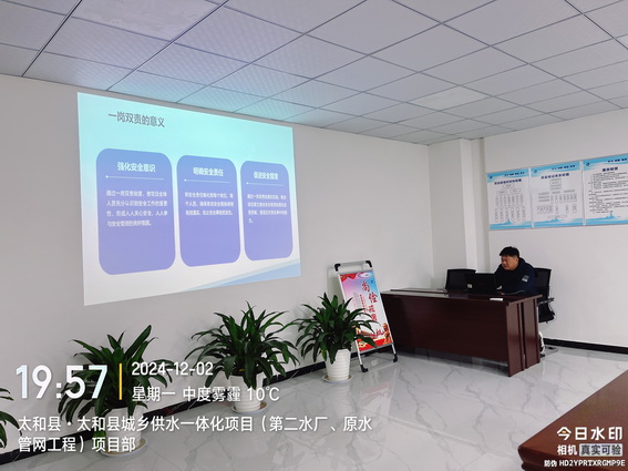 为进一步提升太和供水一体化项目员工的安全意识,切实落实安全“一岗双责”,2024年12月2日项目部组织了一场专题培训。此次培训由安全科科长李明进行授课。